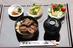 冬季は逢坂山の雪見を兼ね食通の珍味”かねよ独特”の”うなぎのすき焼”をご賞味くださいませ。 |